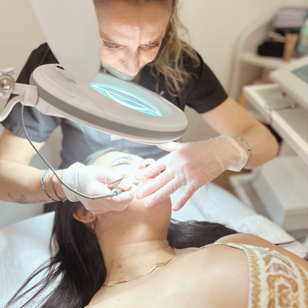 Electrolysis is a permanent hair removal method that involves using a microscopic needle that emits hot electrical currents directly into the hair follicle, destroying the hair’s ability to regrow hair, protecting the surface of the skin.